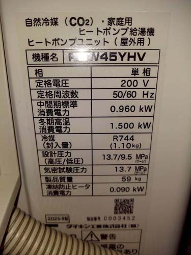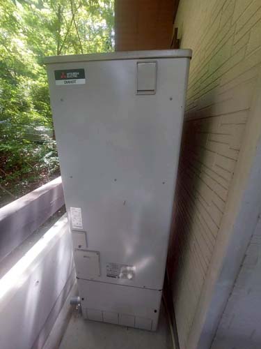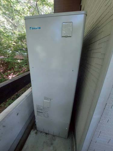 高原町後川内 三菱電機家庭用自然冷媒CO2ヒートポンプ給湯機 ヒートポンプユニットSRT-LUK45-L→ダイキン自然冷媒CO2・家庭用ヒートポンプ給湯機 ヒートポンプユニットRQW45YHV、貯湯ユニットTUA37YHV エコキュート交換工事