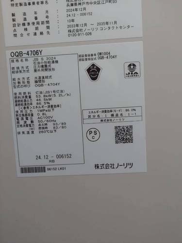 高鍋町上江 ノーリツ石油小形給湯機OQB-4706Y 給湯器交換工事