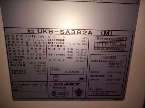 高千穂町岩戸 コロナ給湯器UKB-A4000HTX→コロナ石油給湯機付ふろがまUKB-SA382A(M) 給湯器交換工事
